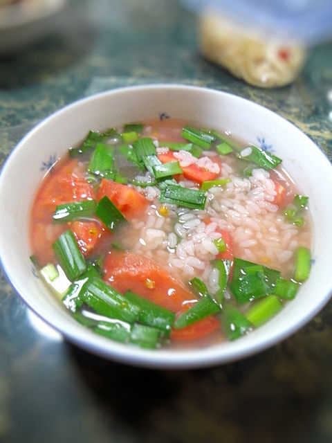 トマトとニラの雑炊 レシピ 作り方 By すいかサマ 楽天レシピ