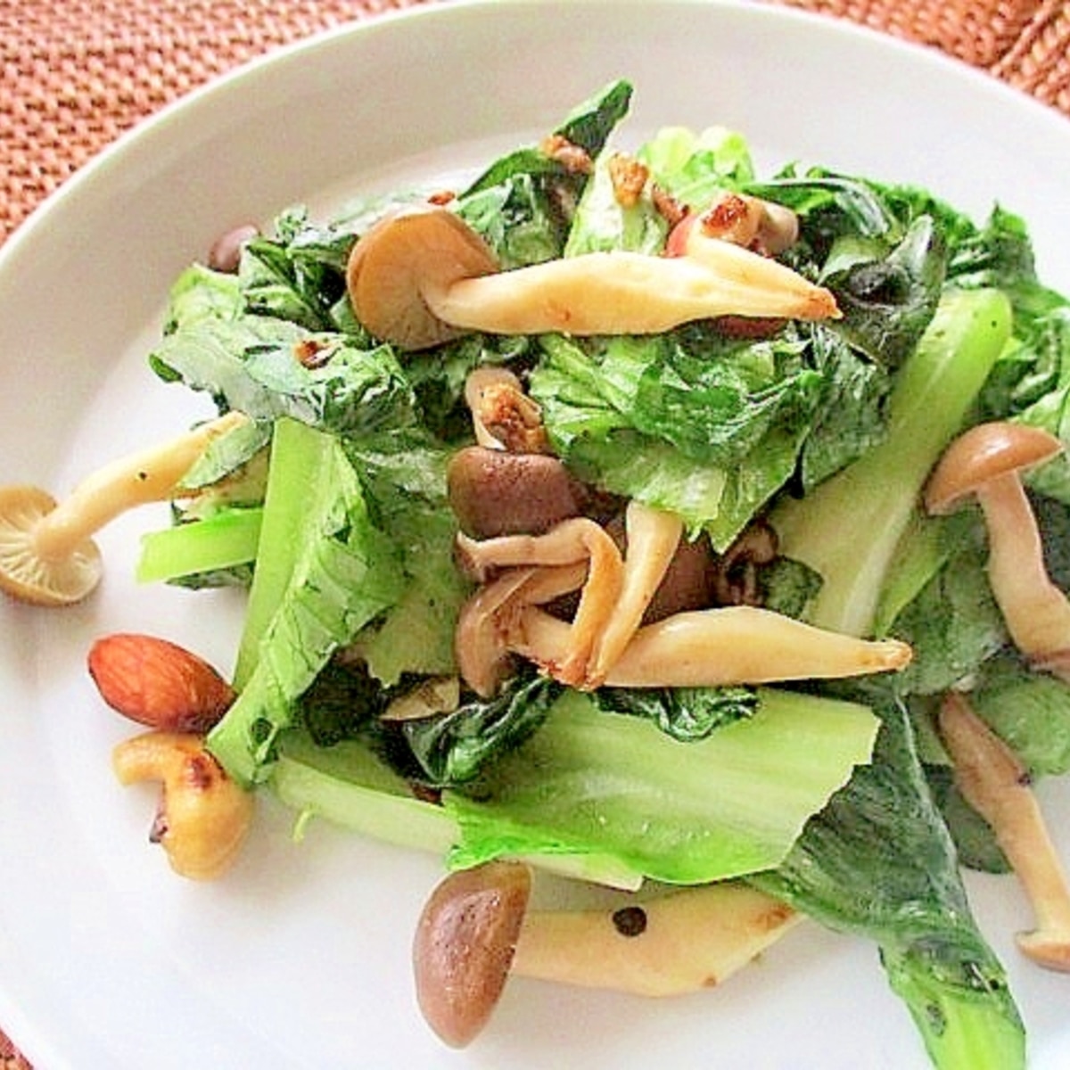 ロメインレタスとしめじとナッツのソテー レシピ 作り方 By はぁぽじ 楽天レシピ