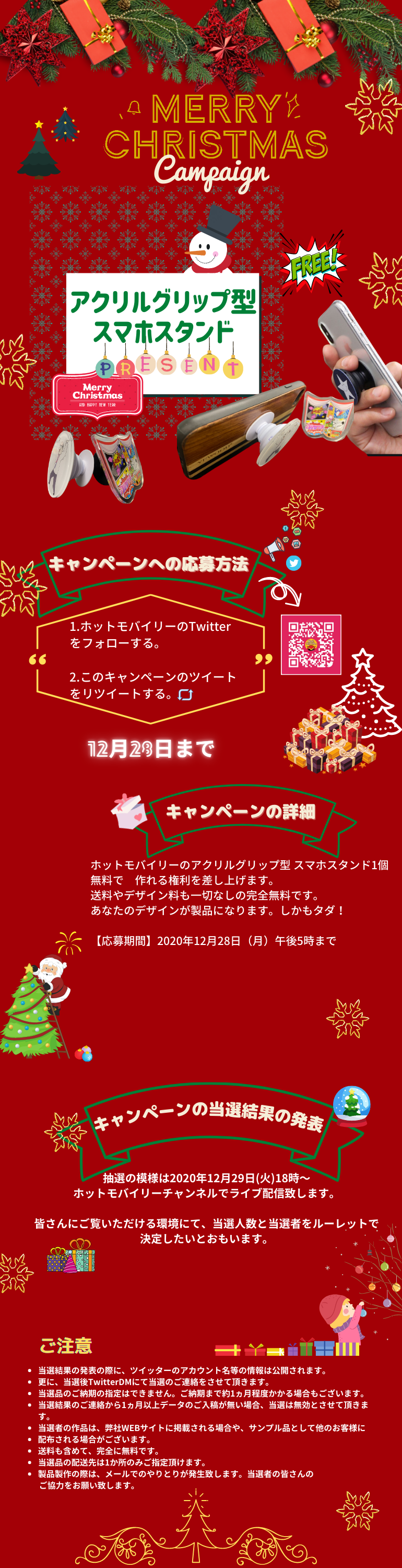 アクリルグリップ型スマホスタンドがオリジナルデザインで作れます クリスマスキャンペーン ホットモバイリー