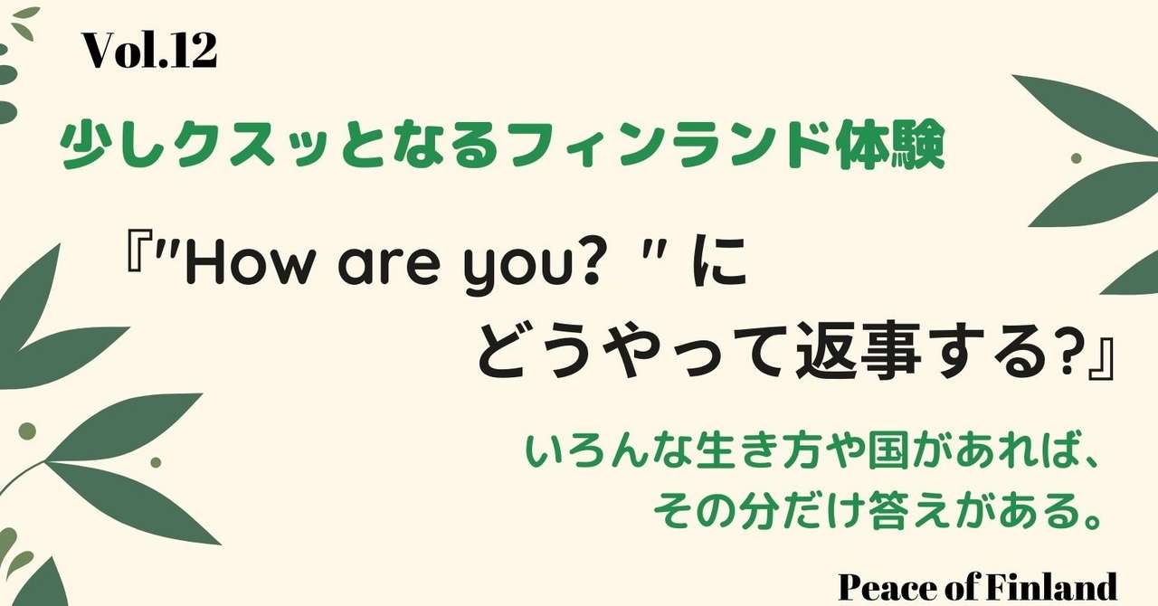Peace Of Finland Vol 12 フィンランド人の How Are You の返事の勢いがすごい フィンランド 生き方 オンネ とリネン Note