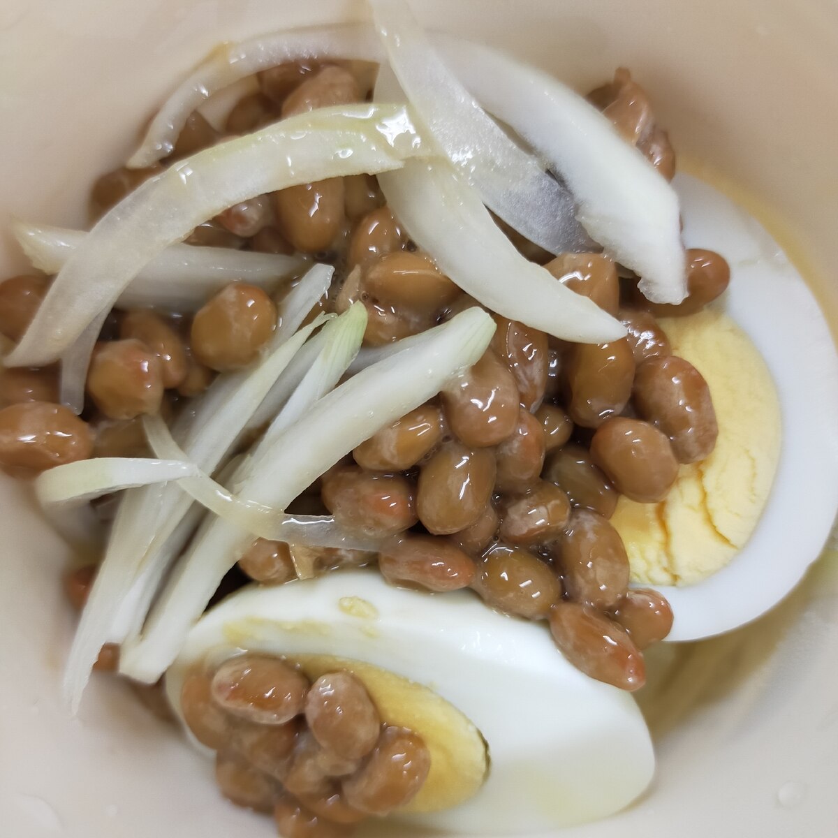 シャキシャキ玉ねぎとゆで卵の納豆ごはん レシピ 作り方 By ぴぐ 楽天レシピ