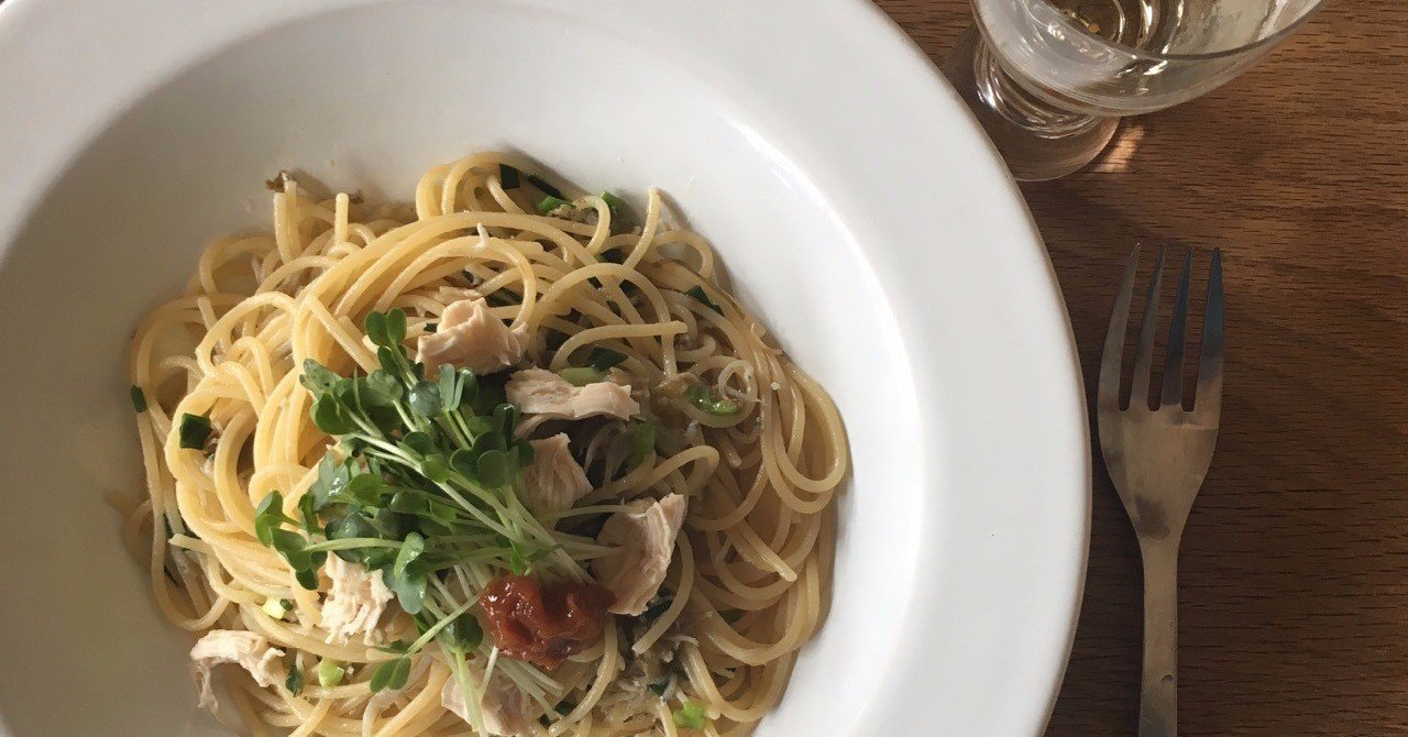 酒と塩をふってからレンチン加熱して裂いたささみ 塩少々 叩いた梅干し 醤油少々をボウルに入れ 茹でパスタ をぶっこみ オリーブ油で和え 適当に切ったカイワレも混ぜ込んだ和風スパゲティ ちぎった海苔をかけ 佐原チハル アジールワークス Note