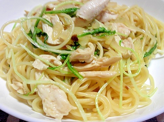 ちょっと大人向けな柚子胡椒がポイントの大根菜と蒸し鶏の和風パスタ