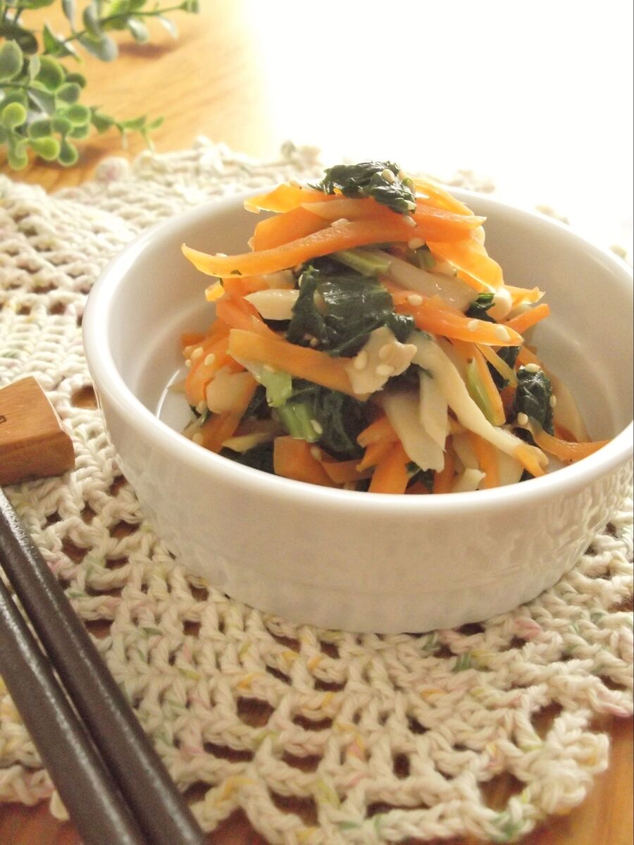 人参ナムルの作り方 人気のにんにく風味 レンジを使った簡単レシピ やまでら くみこ のレシピ