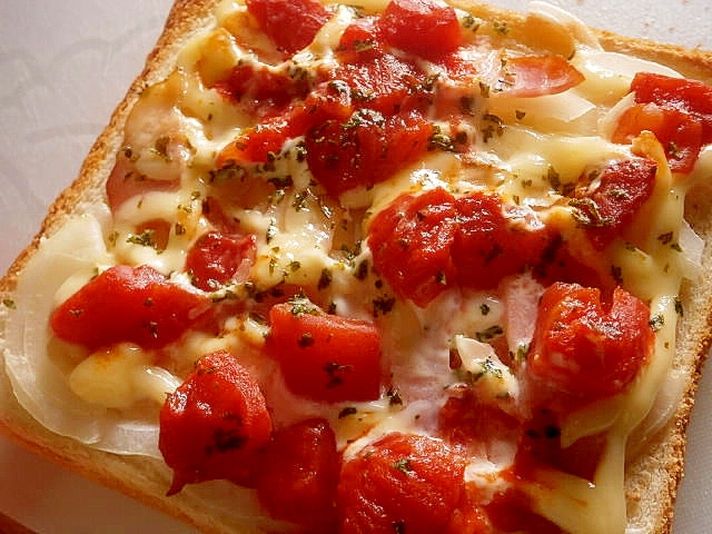 トマトバジルピザトースト 朝はパンが食べたい