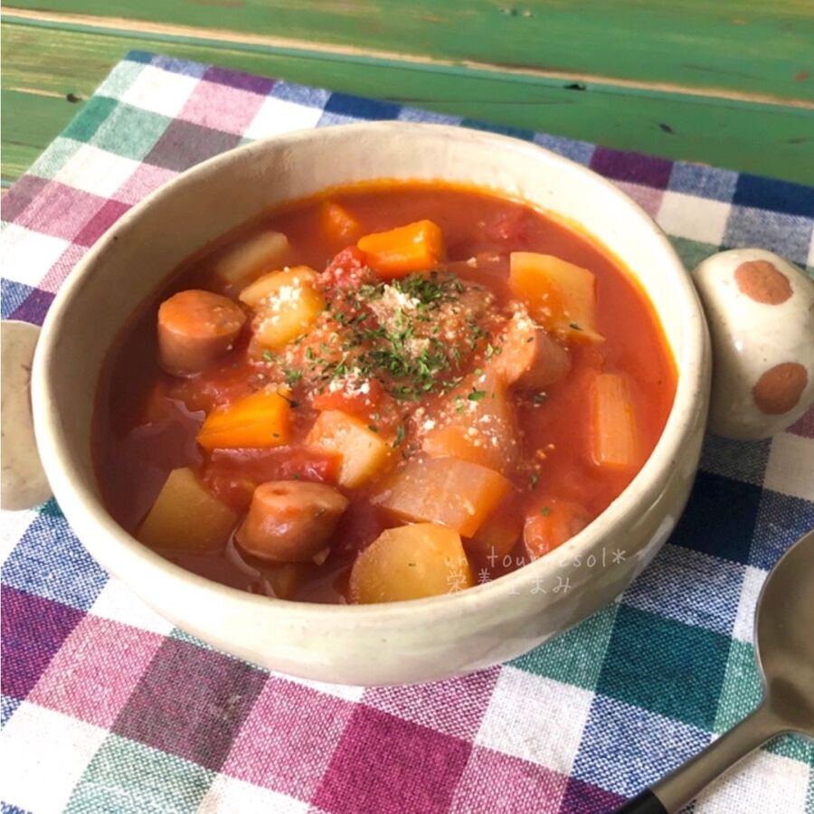 娘ちゃん絶賛あったかスープ りんごジュースdeミネストローネ 疲労回復効果にオススメ 暮らしニスタ