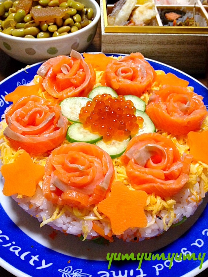 ちらし寿司ケーキです 愛らしく 美味しく 幸せに レシピ 作り方 By ゆんゆんゅん 楽天レシピ